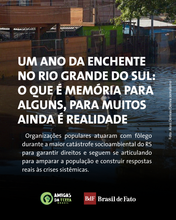 Um ano da enchente no Rio Grande do Sul: o que é memória para alguns, para muitos ainda é realidade Há um ano, a população do estado do Rio Grande do Sul, no Sul do Brasil, enfrentava um dos piores – se não o maior – desastres socioambientais da sua história. Nos últimos dias de abril e durante o mês de maio de 2024, os volumes de chuva registrados no estado foram muito altos na maioria das regiões, situação sem precedentes em mais de um século de medições em diferentes municípios, segundo noticiou a Metsul, instituto de Meteorologia. Localidades de bacias hidrográficas importantes, dos quais diversos rios deságuam na região metropolitana de Porto Alegre, tiveram facilmente médias de 400mm a 800mm de chuva acumulada no período, alcançando impressionantes 1.023mm na estação meteorológica de Caxias do Sul, na Serra Gaúcha. Em menos de quinze dias choveu o equivalente ao que costuma chover durante cinco meses no estado. Os resultados puderam ser acompanhados por todo o Brasil pela mídia, inclusive com transmissão ao vivo feita por âncoras famosos dos canais de TV. As imagens do caos climático correram o mundo. Cidades ficaram inundadas com as cheias dos rios e deficiência no sistema de proteção e de escoamento da água das chuvas, comunidades ilhadas devido a deslizamentos de terra e estradas destruídas, prejuízo econômico e impacto ao meio ambiente. Aproximadamente 537 mil pessoas tiveram que deixar suas casas; 80 mil precisaram recorrer a abrigos públicos; 184 pessoas morreram e outras 25 ainda seguem desaparecidas. Cerca de um a cada cinco habitantes do RS foram afetados pelas enchentes. Das 497 cidades que existem no estado, 478 foram atingidas. Passado um ano, a histórica enchente ficou na memória para alguns mas, para muitos, ainda é uma realidade vivenciada diariamente. A classe trabalhadora, a população empobrecida, pequenos comerciantes, territórios indígenas e quilombolas, assentamentos da reforma agrária e camponeses seguem tentando recuperar suas perdas e reconstruir minimamente suas vidas. Para se ter uma ideia, no final de abril deste ano, quase 400 pessoas permaneciam em abrigos públicos por não terem para onde ir, a grande maioria na região metropolitana. O governo estadual quer esvaziá-los até o final de maio, mas utilizando soluções ainda mais precárias, como a estadia solidária e as casas temporárias, o que acaba por estender a agonia e uma insegurança que parece não ter fim. De recurso habitacional mais efetivo existe o programa do governo federal de compra de casa com verba pública (chamado de compra assistida), porém diversas famílias reclamam que não conseguem acessá-lo devido à exigência de comprovar documentação, além de o processo levar meses. Resistir para existir: enchente escancara luta dos territórios de vida A Aldeia Mbyá Guarani Pindó Poty sofre, há anos, com alagamentos no bairro Lami, no Extremo Sul de Porto Alegre (RS). Os guaranis não contam mais quantas vezes reconstruíram suas casas, perderam suas roupas e utensílios, plantios, animais domésticos e os que criavam para se alimentar. Na grande enchente de 2024, não foi diferente. A aldeia ficou debaixo d’água com o transbordamento do Arroio Lami, que passa ao lado do local. Temporariamente, as famílias foram abrigadas pelos parentes Kaingang da Aldeia Van-Ká, no mesmo bairro da Capital gaúcha. Quando retornaram, contaram com uma rede de solidariedade e de doações para reconstruir suas vidas novamente. Um levantamento colaborativo, realizado de forma conjunta pelo CIMI Regional Sul, Comissão Yvyrupa Guarani (CGY), FLD/Comin/CAPA e CEPI/RS, indicou que mais de 80 comunidades e territórios indígenas foram diretamente afetados, alguns com extrema gravidade, nos meses de abril e maio passados. A CGY promoveu uma campanha de arrecadação financeira e de donativos na época, resultando na distribuição de 20 toneladas de alimentos para 37 aldeias, que também receberam água potável e itens básicos, como cobertores e colchões. Segundo relatório divulgado pela Comissão Guarani em junho de 2024, foram alcançadas 674 famílias, somando mais de 3.300 pessoas, em diversas regiões do estado do Rio Grande do Sul. A campanha da CGY contou com ampla colaboração da sociedade civil, entre parceiros, pessoas, coletivos e organizações, muitas de fora do Brasil. Além dessa, a Amigas de Terra Brasil participou de outra frente, junto com a Rede Coop, pela qual entregamos cestas de alimentos da agricultura camponesa às famílias Guarani da Aldeia Yy Ryapu, em Palmares do Sul, no Sul do estado. Essas iniciativas resumem bem o que se viu em boa parte do período de emergência da enchente: uma rede solidária sustentada pela sociedade já organizada e por tantos indivíduos que, frente à necessidade urgente, organizaram-se. “Nenhuma das Tekoá [aldeias] atingidas teve apoio das autoridades até agora. Nem com alimentação, nem com nada. Aí é difícil. Quando aconteceu essa tragédia da enchente, conseguimos, através do apoio de parceiros indigenistas e de organizações de fora do país, como da Alemanha”, relatou Helio Wherá, da CGY. A enchente escancara que os governos estão cada vez mais afastados dos territórios indígenas. Seja em atender a principal demanda de muitos deles, que é a demarcação da terra, quanto em fornecer a infraestrutura necessária e o acesso a serviços humanos básicos, como de saúde e saneamento, para que vivam. Em nível federal, vemos uma tentativa do Governo Lula tentar chegar nos locais, mas ocorre de forma muito lenta. A Aldeia Pekuruty resiste de forma precária há 16 anos às margens da BR 290, em Eldorado do Sul (RS), e na enchente de 2024 foi alagada, junto com cerca de 80% da cidade. O pouco que sobrou de seus pertences foi retirado por funcionários do DNIT (Departamento Nacional de Infraestrutura de Transportes), tendo que recomeçar praticamente do zero e contando apena