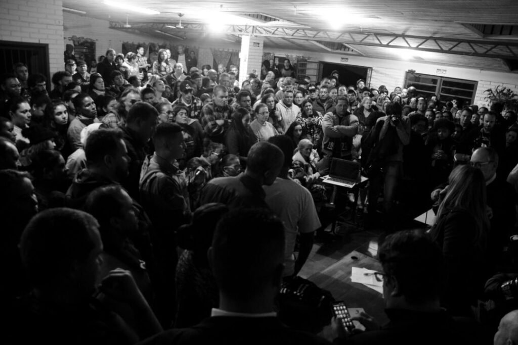 Fraport, empresa responsável pela obra do aeroporto Salgado Filho, recusou-se a sentar à mesa de debate e não respondeu a nenhum questionamento das famílias da Vila Nazaré As respostas não vieram, é verdade – elas raramente vêm. Contudo, a noite de ontem (23/5) serviu para mostrar a força que a mobilização das famílias da Vila Nazaré possui: o salão da Escola Ana Nery esteve completamente lotado durante a audiência pública que debateu a remoção da comunidade devido às obras do aeroporto Salgado Filho. A prefeitura de Porto Alegre, representada pelo diretor-geral do Demhab (Departamento Municipal de Habitação), Mário Marchezan, viu-se obrigada a ouvir os questionamentos de moradoras e moradores que, em um processo sem nenhuma transparência e recheado de ameaças e medo, são empurrados para fora do território onde há mais de 60 anos enraizaram suas vidas. A Fraport, empresa alemã operadora do aeroporto e responsável pela obra, esteve presente na audiência, mas se negou a dialogar: não sentou à mesa e nem respondeu a qualquer dúvida das famílias. Saíram mais cedo do encontro, talvez assustados com a mobilização popular. Entre as autoridades, falaram também representantes do Ministério Público Federal, da Defensoria Pública do Rio Grande do Sul e da Caixa Econômica Federal. Todos defenderam o diálogo, em crítica à atitude da Fraport e da prefeitura de Porto Alegre, que não cumpriu promessas feitas em negociações prévias que ocorreram no âmbito do Ministério Público Estadual, em especial no que diz respeito ao cadastramento de moradores da Nazaré. O processo está sendo feito por outra empresa privada contratada pela Fraport, a Itazi (que, em seu site, orgulha-se da “agilidade e técnica que consegue impor ao processo expropriatório”). Em meio a diversos constrangimentos, fotos, medições, perguntas descabidas e estigmatizadoras, como em relação a antecedentes criminais e outros questionamentos socioeconômicos, as famílias ainda foram convocadas pelo Demhab a outro cadastro, no qual deveriam assinar termos dos quais sequer recebiam recibo e com pouquíssimas informações sobre a finalidade dos documentos. Na audiência, Mário Marchezan avisou que este “dossiê” montado pela prefeitura era voltado apenas a quem seria realocado no loteamento Nosso Senhor do Bom Fim, um dos locais pretendidos pela prefeitura para levar os moradores. Sobre o outro destino, mais ao norte, o loteamento Irmãos Marista-Timbaúva, a comunidade deu o seu recado: não vai para lá de jeito nenhum. Afastado e perigoso, o local tem péssima estrutura de atendimento básico, como escolas, hospitais e transporte público. A promessa repetida é que ninguém será removido para um local que não deseja ir. Timbaúva não!, exigiu claramente a comunidade. Contudo, novas alternativas não foram dadas e segue a principal e mais grave dúvida: se não no Timbaúva, onde vamos morar? A Fraport insiste para que as remoções ocorram até dezembro de 2018, quando quer passar o trator por cima da Vila Nazaré, pressionando uma situação que está longe de se resolver, ainda mais se dependermos da iniciativa da prefeitura de Nelson Marchezan Jr., do PSDB, que outra vez esteve ausente do debate. Os moradores relatam que a última vez que o prefeito de Porto Alegre foi visto próximo à Vila Nazaré foi em meados de 2016, quando soltava promessas ao vento em uma hollywoodiana campanha eleitoral. O rastro de destruição da Fraport se espalha e, na mesma medida, ou em medida ainda maior, cresce a luta, a resistência e a construção de alternativas populares de desenvolvimento para a região. Há, no entanto, alternativas ao projeto da Fraport, e elas vieram à tona ao longo da audiência pública. O MPF se responsabilizou por fazer um levantamento sobre a propriedade das áreas circunvizinhas; Fernanda Melchiona, vereadora do PSOL, verbalizou a ideia: urbanizar a região próxima e construir casas ali mesmo, evitando que a comunidade seja dividida e perca suas raízes. Terrenos no entorno não faltariam para isso – o que faz questionar a própria obra da maneira como está pensada atualmente, perguntas que repercutem ainda mais com a falta de transparência por parte da Fraport: a empresa protocolou um projeto nos órgãos específicos para liberar a obra e trouxe outro à mesa de negociação do Ministério Público Estadual. Qual projeto vale? A pista de pouso precisa mesmo se direcionar à vila? Até onde ela vai? Que casas seriam afetadas de fato? Pontos que deveriam estar extremamente visíveis e límpidos em uma proposta que pretende desabrigar 2.100 famílias, mas que, frente à intransigência da Fraport e da prefeitura de Porto Alegre, seguem em aberto, poucos meses antes do suposto prazo para que as obras comecem. Não longe dali, a ocupação Povo Sem Medo Porto Alegre, do MTST (Movimento dos Trabalhadores Sem Teto), é prova do espaço útil que há na região. Também vizinho e amassado pela Fraport, de um lado, e pelo Wallmart, de outro, está o Quilombo dos Machado, que resiste ao frequente ataque das corporações e defende seu território tradicional. O rastro de destruição da Fraport se espalha e, na mesma medida, ou em medida ainda maior, cresce a luta, a resistência e a construção de alternativas populares de desenvolvimento para a região. Em uma noite histórica em que a Vila Nazaré se ergueu unida em defesa de seus direitos, espera-se que enfim as autoridades, públicas ou privadas, tenham entendido a dimensão de seus atos: expor as pessoas em um processo de cadastramento estigmatizador que as trata como números; tirar as famílias de seus lares; dividi-las em diferentes pontos da cidade, sempre mais distantes e esquecidas; não dar respostas satisfatórias sobre suas intenções, promovendo o medo e a ansiedade dentro da comunidade; nada disso jamais poderá ser feito sem que se ouça aquelas e aqueles diretamente atingidos: a voz