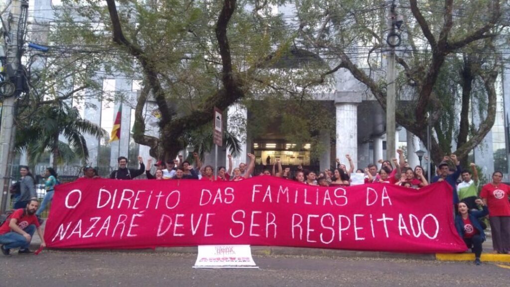 Apesar do reconhecimento do direito a uma nova alternativa a quem não aceitar a remoção para o Timbaúva ou para o loteamento Nosso Senhor do Bom Fim, decisão judicial retrocede em pontos importantes, dando aparência de legitimidade às violações de direitos promovidas por Fraport e prefeitura de Porto Alegre. Desejo das cerca de 2 mil famílias é de permanecer na região onde construíram suas raízes há mais de 60 anos. ————————– Ao andar pelas ruas da Vila Nazaré, zona norte de Porto Alegre, percebe-se logo o abandono: não há saneamento, as poças se multiplicam e invadem as casas em dias de chuva, o lixo não recolhido se acumula pelos cantos. O posto de saúde foi fechado; a escola infantil também. Serviços básicos de infraestrutura, como iluminação pública e pavimentação de ruas e calçadas, são inexistentes. Completam a cena as paredes reduzidas a escombros que surgem ora à direita ora à esquerda, em sequência: são os restos das casas de quem já aceitou sair da comunidade e se mudou para o loteamento Nosso Senhor do Bom Fim (cerca de 120 famílias, o que representa aproximadamente 5% do total de habitantes da Vila Nazaré). O abandono do poder público é tamanho que faz da vida no local quase insuportável: e eventualmente as pessoas cedem, cansadas de ver o esgoto invadindo seus terrenos, aceitando sair de suas casas mesmo que para longe e para apartamentos menores. “Pelo menos lá tem calçada, tem saneamento”, muitos pensam, sem perceber a tática usada por poderes públicos e privados para criar, nas moradoras e nos moradores, o desejo pela saída. Mais preocupante, porém, é a Justiça não identificar essa velha tática: as decisões publicadas na noite da última quarta-feira (13/8) a respeito do processo de remoção das famílias da Vila Nazaré ignoram diversas violações de direitos cometidas por prefeitura de Porto Alegre e Fraport (empresa alemã concessionário do aeroporto), que não são poucas e vêm sendo denunciadas há tempos. Em qualquer conversa com moradoras e moradores da comunidade, as denúncias não demoram a surgir: – Existem ainda famílias não cadastradas, o que impossibilita o argumento utilizado por Fraport e prefeitura (e aceito pela justiça sem nenhuma verificação) de que há apartamentos para todos. Afinal, como isso poderia ser afirmado sem que se saiba exatamente quantas pessoas vivem na comunidade? – O cadastro foi feito de maneira intimidatória, com a presença de soldados da Brigada Militar; – A Itazi, contratada pela Fraport para realizar o cadastramento, não foi transparente em seu questionário e seus métodos. Eram feitas perguntas descabidas e sem nenhuma relação com o processo de remoção – por exemplo, sobre antecedentes criminais. A Itazi, aliás, orgulha-se em seu site da “agilidade que consegue impor ao processo expropriatório”; ou seja, da rapidez com que consegue expulsar as famílias que estão no caminho de grandes empreendimentos; – Há denúncias de ameaças veladas por parte do Demhab (Departamento Municipal de Habitação), cujos funcionários informam àqueles que não aceitam a remoção para o Timbaúva que ficarão sem casa; – Terrenos habitados por mais de um núcleo familiar estão sendo considerados como uma única casa – assim, famílias de sete ou oito pessoas que viviam em casas separadas, mas em um mesmo terreno, serão forçadas a dividir um único apartamento; – Famílias estão sendo divididas, indo parte para um loteamento, parte para outro. O critério, segundo o próprio Demhab, é sorteio; – Forçadas a tomar uma decisão, as famílias não são informadas sobre a terceira opção, a ser ainda oferecida pela Fraport e pela prefeitura de Porto Alegre a quem se negar a ir para o Timbaúva ou para o Nosso Senhor do Bom Fim – quer seja uma indenização financeira, quer seja um novo loteamento a ser construído na região onde hoje está a Nazaré. Esses são só alguns exemplos: as denúncias são várias, muitas delas documentadas. Mas para ouvi-las, é claro, é preciso ir até lá, escutar as pessoas e tentar entender a realidade local. A voz das pessoas atingidas, porém, não tem sido ouvida pelas autoridades ao longo do processo. Ainda assim, apesar de diversos entendimentos equivocados, a decisão judicial é clara em um ponto crucial: ninguém deverá sair para onde não quer ir. Ou seja, não deverão ocorrer remoções forçadas: as famílias que não aceitarem o que está sendo agora ofertado deverão ser contempladas com outra opção de moradia, a ser oferecida por Fraport e prefeitura de Porto Alegre. Segundo os planos iniciais da empresa alemã e do prefeito de Porto Alegre, Nelson Marchezan Jr. (PSDB/MBL), cerca de 85% das famílias da Nazaré seriam removidas para o Loteamento Irmãos Marista, no Timbaúva, bairro Rubem Berta. As famílias da Nazaré, porém, já deixaram bastante claro que não querem ir para este local: em audiência pública promovida pelo então deputado estadual Pedro Ruas (PSOL) – quando a Fraport recusou sentar-se à mesa e responder aos questionamentos da comunidade -, a principal exigência das famílias foi gritada por todas e todos os presentes: Timbaúva não! Hoje o lema estampa bandeiras e faixas usadas em protestos realizados na região e é uma das demandas mais marcantes na luta da comunidade pelos seus direitos. O desejo das famílias é permanecer na região onde há 60 anos nutre suas raízes sociais e familiares. Quem possui comércio na vila também demonstra grande preocupação: como manter a sua forma de sustento em outro lugar, perdendo os laços e a confiança construídas dentro da Nazaré? A promessa de que comércios serão considerados no realojamento das famílias é recente, fruto da pressão popular: ainda assim, não há nenhuma garantia de que será cumprida – afinal, desde o início o processo ocorre sem nenhuma transparência e com pouca informação.