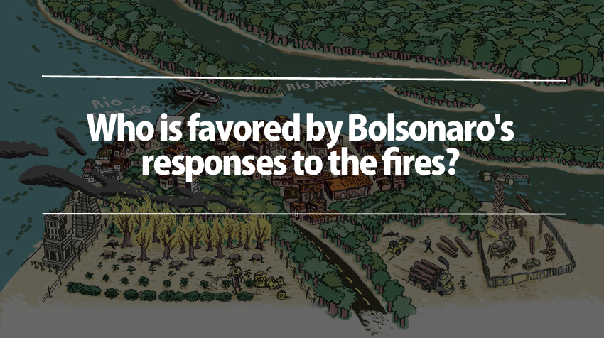 We can say from the start: only the market, land grabbers, agribusiness. And the PL 2633 (PL stands for Project of Law) – the notorious PL of Land Grabbing – is the greatest evidence of it. And well… Ricardo Salles, the minister for the Environment, also made it quite clear by saying that the coronavirus pandemic is a great opportunity to dismantle environmental regulation because everyone is looking elsewhere. Due to the urgency and the growing concern of the international community in regard to the 2019 fires, Bolsonaro administration reacted with solutions aimed at market interests, which in no way cover the problems faced by the peoples of the Amazon. On the contrary, they put them at risk by favoring policies that benefit big companies and land grabbers and also by strengthening measures of nature financialization. In the National Congress, projects that strengthen measures such as the PSA (Payment for Environmental Services, in English) have advanced, showing that the “solutions” pointed out by the Brazilian government is based on nature only by turning it into shares on the stock exchange market and money for companies – disregarding peoples who live and work on the land. At the same time the government took the opportunity to move forward in the proposal of amnesty for land grabbers, expressed in PL 2633 – encouraging exactly the practice that is behind the increase in fires last year. Even in the midst of the coronavirus pandemic, PL 2633 can be voted at any time in Congress. If approved, it will further facilitate the action of invaders of public lands. For the Carta de Belém Group, “[…] the legislation allows liquidation of land and public assets at a bargain price in favor of medium and large land grabbers” – remembering that, meanwhile, “agrarian reform and the titling of collective territories remain paralyzed”. Those would be true solutions, but Bolsonaro thinks otherwise. This is part 2 of the introduction to the story “What really happens in the Amazon Forest”. Browse content: Part 1 (central page): What really happens in the Amazon ForestPart 2: [you are here] Who is favored by Bolsonaro’s responses to the fires?Part 3: The “win-win” of companies with the financialization of naturePart 4: But after all, who is behind these crimes? And also see: The siege explained on a map In short, payment measures for environmental services are a way to monetize the relationship with nature; depending on financial flows, it may be interesting to preserve it, or maybe not. Such measures do not address the structural issues of the climate problem and do not protect the peoples and their territories: on the contrary, they leave them at the mercy of the large polluting industries, which invade the Amazon to “compensate” for their violations of rights elsewhere and for the pollution inherent to their activities. The documentary “Green market: the financialization of nature” explains and denounces the false solutions that capitalism proposes for the evils it causes (in Portuguese). The land, thus, only serves the mood of the market. Communities lose their autonomy over their own territories, transformed into assets on stock exchanges and “carbon capture farms”. This leads to the criminalization of ancestral practices and cultures. It is to the Market that Bolsonaro and the Minister of Environment, Ricardo Salles, respond to, in detriment of the agro-socio-bio-diversity of the Amazon. This is as clear as could be: at a meeting with the president and all high members of government, Salles said that the coronavirus pandemic is a proper opportunity to dismantle environmental law – in order to benefit big companies. It is explicit: for them, the Amazon needs “capitalist solutions”: in other words, devastation, exploitation, privatization. Back to the central page “What really happens in the Amazon Forest“ Continue reading the introduction: Part 3: The “win-win” of companies with the financialization of naturePart 4: But after all, who is behind these crimes?