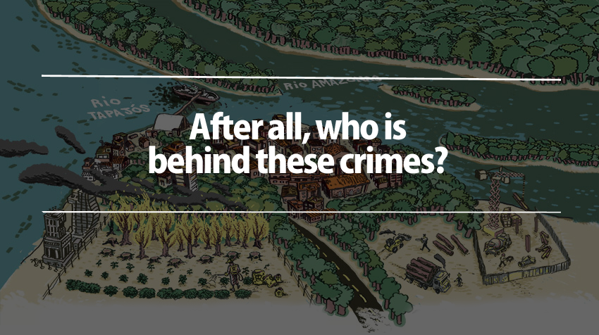 We talked a lot about the Market, the Companies, the Industry, the Ruralists. However, these otherworldly entities have names, they are part of our world, we can and must quote them so that they bear their blame: the meat industry, agribusiness giants and their financial market financiers are the biggest stimulators for attacks on the peoples of the Amazon – and, obviously, who profits the most from it. Although Bolsonaro’s government tries to blame the impoverished strata of society for the devastation of biodiversity in Amazon and throughout Brazil – saying that small farmers and communities are responsible for setting land on fire and losing control of it – an interesting report by The Intercept Brasil showed that, behind the burning forests and deforestation are powerful figures: “Public data from Ibama, the federal government agency responsible for preserving the environment, compiled and analyzed by De Olho nos Ruralistas, show that the 25 largest deforesters in the country’s recent history are large companies, foreigners, politicians, a company linked to a banker, frequenters of social columns in the Southeast region and three slave labor exploiters”. This is part 4 of the introduction to the story “What really happens in the Amazon Forest”. Browse content: Part 1 (central page): What really happens in the Amazon ForestPart 2: Who is favored by Bolsonaro’s responses to the fires?Part 3: The “win-win” of companies with the financialization of naturePart 4: [you are here] But after all, who is behind these crimes? And also see: The siege explained on a map It is in the midst of all this – land grabbing, fires, soy and its pesticides, megaprojects that destroy ways of life – that communities resist, even though they are under extreme pressure and life threats. These Communities and Peoples are also transformed into abstract entities, yet there are simple people, of common habits, taste for football, family lunch, bathing in the river, resting in a hammock. Small farmers, fishermen, extractives from legal reserves, quilombola communities and indigenous peoples who wanted, if they could chose, to just continue their lives in the place to which they belong and to maintain the forest with which they live and on which they depend standing. Another world is not possible, there is only this one. Therefore the struggleThere is no possible coexistence with the infinite destructive desire of capitalist expansion: its poison runs through the surroundings, the lakes get polluted and dry up, the land is contaminated, people are expelled from their territories, attacked, cowardly murdered. Bolsonaro’s hate speech and the environmental and agrarian dismantling policies, in defense of the interests of agribusiness and foreign extractive industries, materialize in violence. For example: the murders of indigenous people grew 22.7% in 2018. Against all of that, the struggle is most needed: daily, an ant work, little by little – as difficult and brutal as it is necessary and rewarding. This is what the stories we heard on the recent visit to the Tapajós region in Pará show. They show the siege of capital in the Amazon, with land grabbing, the advance of megaprojects over entire communities, the attack on the forest and rivers and the threats to those who oppose it, standing up in defense of traditional ways of life and the rights of peoples. It is not for nothing that these people are called Guardians of the Forest: we would not have thought of a fairer name. Return to the central page “What really happens in the Amazon Forest” Also read parts 2 and 3 of the introduction:– Who is favored by Bolsonaro’s responses to fires?– The “win-win” of companies with the financialization of nature And also: The siege explained on a map