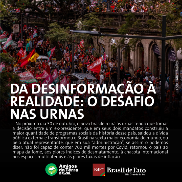A revelação divina que o movimento de extrema direita evangélica propagava no primeiro turno, na qual o “Messias” estaria eleito, não se concretizou. Nas primeiras semanas de campanha do segundo turno, Bolsonaro foi soterrado pela associação a imagens como maçonaria, a explosão das contradições entre o que anuncia em sua campanha e o que de fato concretizou em seu governo, até a conexão com a pedofilia. Trouxe o desafio à bancada conservadora eleita no 1º turno e aos seus seguidores de como defender o candidato mais frequentemente associado àquilo que criticam. Como apoiar a família Bolsonaro quando essa, cada vez mais na prática, difere dos valores morais que acredita? Tais fatos levaram o bolsonarismo a afirmar, mais do que nunca, a imagem do “Messias”, aquele herói além do bem e do mal ou, como tanto defende a primeira-dama Michelle Bolsonaro, “que ele não é perfeito”, em síntese, a figura do salvador frente ao demônio Partido dos Trabalhadores (PT), ainda que tal salvador seja bastante contraditório. Isso porque se oportuniza do cenário de tensão social para propagar uma cultura do medo. Até entre a esquerda se compartilha o clima de fim dos tempos, na ideia de uma eleição “tudo ou nada”. Para angariar votos, Bolsonaro aposta na criação de fantasias contra Lula, como a do fechamento de igrejas, tomada da propriedade privada e instalação da ditadura comunista, mesmo que em oito anos de governo do ex- presidente Lula nada disso tenha acontecido. Ao invés de se associar a um grande gestor público com inúmeros feitos, até porque seu governo não os possui, ele se coloca como um enviado divino contra o comunismo. Leia também: Bolsonaro já usou Roberto Jefferson em vídeo para dizer que seu governo “não roubava” Nas últimas semanas, o foco tem sido retomar a força do antipetismo com o discurso de combate à corrupção, trazendo para perto velhas figuras como do ex-Juiz Lavajatista Sergio Moro. Em sua campanha, com destaque ao rádio, redes sociais e whatsapp, chovem fake news históricas sobre o candidato Lula. Há um jogo de manipulação na interpretação das decisões do Supremo Tribunal Federal (STF) que inocentou Lula, ao constituírem uma narrativa de que foram enfrentados apenas os aspectos técnicos processuais, não as questões de mérito, portanto, não cabe se falar em inocência, entre outros arranjos narrativos. As mentiras e falsidades programáticas de Bolsonaro Ao longo dos debates, Bolsonaro buscou defender algumas bandeiras de sucesso da sua gestão. No entanto, com um cuidado de olhar para a realidade concreta e para a história, não encontramos essas informações. Uma delas é a criação do PIX (sistema de pagamento instantâneo); cabe recordar que tal modalidade foi criada durante o Governo Temer, desenvolvida por técnicos do Banco Central. Tampouco o anúncio feito por sua campanha de que os bancos perdem milhões com o PIX tem fundamento, uma vez que o próprio sistema foi desenvolvido para apoiar banqueiros que estavam perdendo espaço para aplicativos de pagamento financeiro. Outro tema é a transposição do rio São Francisco, que é bastante caro ao povo nordestino. As obras de infraestrutura começaram em 2007, sofrendo uma redução de orçamento em 2013, o que implicou na entrega da primeira parte da obra em 2015, durante o Governo Dilma. Em 2017, ocorreu uma segunda entrega durante o Governo Temer, e por fim, uma terceira parte em 2020 pelo Governo Bolsonaro. Assim, seu governo assumiu uma obra com quase 84% de partes construídas. Sobre a grande máquina eleitoral que se tornou o Auxílio Brasil, também é preciso investigar melhor como se chegou ao valor de R$ 600,00 por mês. Primeiro, que as políticas públicas de complementação de renda são bastante antigas no Brasil, e antes de sua gestão, vinha sendo conhecida mundialmente como Bolsa Família. É preciso recordar que uma das propostas lançadas pelo atual governo no início da pandemia, por meio de medida provisória (MP 927), foi a suspensão dos contratos de trabalho por 4 meses sem remuneração. Ainda que posteriormente revogada, a iniciativa do governo deixaria trabalhadores e trabalhadoras sem qualquer rendimento durante a pandemia. Depois disso, a proposta do ministro da Economia, Paulo Guedes, era não haver qualquer subsídio às famílias na pandemia tendo, após pressão da oposição, fornecido o auxílio de R$ 200,00. A oposição seguiu atuante para aumentar tal auxílio para R$ 500,00. Somente em agosto deste ano, o governo anunciou o pagamento dos R$ 600,00, numa clara manobra eleitoral. Essa proposta mantém-se no programa de governo dele, mas sem qualquer informação de onde proverá tais fundos para sustentar a política pública. Em sua campanha eleitoral, anunciou que foi o primeiro a aplicar a vacina contra covid-19, argumento claramente falacioso. A primeira vacina aplicada no país foi em São Paulo, pela compra direta do governador João Doria (PSDB). A situação ficou tão crítica na falta de planejamento do governo federal sobre a aquisição de vacinas, que os estados venderam vacinas ao governo federal para as primeiras aplicações. Além de todo o esquema de corrupção na compra de vacinas apresentado na CPI do Senado e a completa naturalização das mais de 700 mil mortes. Um recurso utilizado pela campanha de Bolsonaro é afirmar o crescimento do país. Informação que contrasta com os dados, já que o Brasil apresentou 1,14% de crescimento nos últimos 4 anos, segundo dados da Organização para a Cooperação e Desenvolvimento Econômico (OCDE), estando entre os piores países em desenvolvimento. Outrossim, amargamos uma inflação galopante na marca de 19,25% acumulados neste ano, levando-nos à primeira posição juntamente com o Chile, conforme dados da Comissão Econômica para a América Latina e o Caribe (Cepal). As obras que são associadas a esse crescimento, como a BR-163, o corr