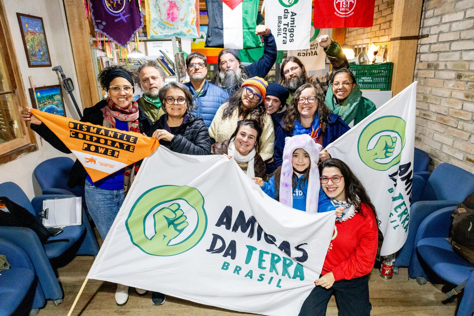 Para além da situação de emergência climática, ressaltamos a atuação da Amigas da Terra Brasil nas negociações do Tratado Vinculante junto à ONU (Organização das Nações Unidas) e na luta para responsabilizar grandes empresas e transnacionais por seus crimes, incluindo a criação de uma Lei Marco desse teor no Brasil (PL 572/22). A organização também ocupa uma cadeira no Conselho do Plano Diretor de Porto Alegre (RS) e atuou, junto com articulações como a Campanha Permanente contra os Agrotóxicos e Pela Vida e a Rede Alerta contra os Desertos Verdes, na denúncia dos impactos dos agrotóxicos e das monoculturas de árvore. Contra esses projetos de morte, apoiamos os territórios de vida, entre eles as aldeias e retomadas indígenas e a produção agroecológica de pequenos produtores e de assentados da Reforma Agrária.