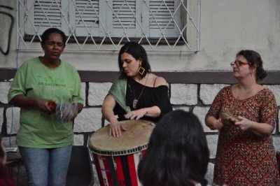 Do iorubá, Iyalodê Idunn significa “Senhora felicidade”. O grupo se reúne no ponto de cultura Quilombo do Sopapo — saiba mais sobre o espaço AQUI. Uma das canções tocadas foi Emôrio. Veja: