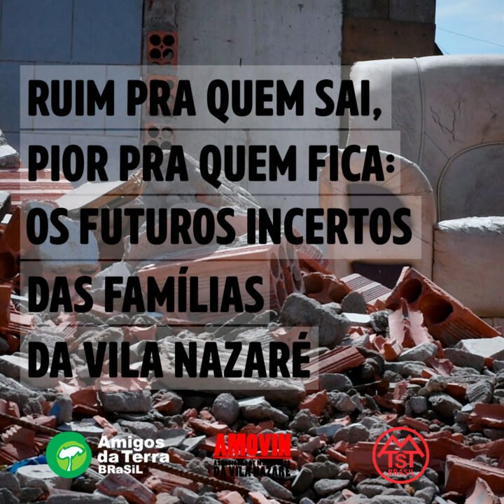 Em decisão recente, Justiça reconhece direito à nova opção de moradia para famílias da Nazaré que não aceitarem a remoção para os loteamentos Timbaúva ou Nosso Senhor do Bom Fim. Apesar do reconhecimento de um direito básico, a decisão judicial retrocede em pontos importantes, dando aparência de legitimidade às violações de direitos promovidas por Fraport e prefeitura de Porto Alegre – são inúmeras as denúncias, tanto das famílias que ficaram na comunidade quanto das famílias que já foram removidas para o Nosso Senhor do Bom Fim: ali, falta estrutura, creche, transporte, praça, comércio. Para o Timbaúva, nenhuma família foi ainda, e dizem em alto e bom som que se recusam a ir. O desejo das cerca de 2 mil famílias da Nazaré é de permanecer na região onde construíram suas raízes há mais de 60 anos.