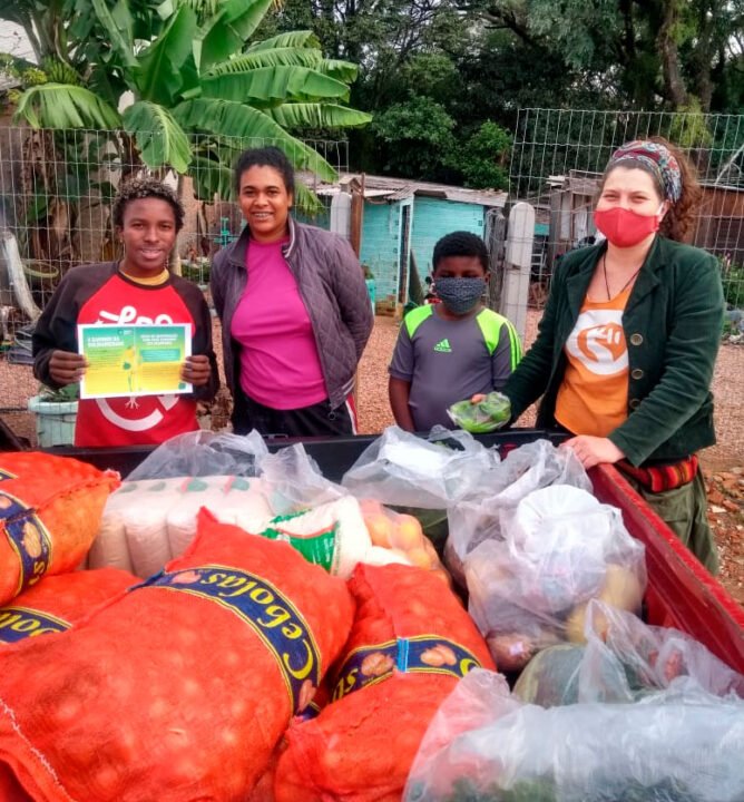 Amigos da Terra Brasil, articulada com diferentes organizações, realiza a compra e repasse de alimentos e itens de higiene a famílias em situação de vulnerabilidade. Pelo menos 500 kg de alimentos já foram entregues e outros 1800kg estão a caminho para famílias de diferentes localidades gaúchas. A ação é uma medida emergencial para tentar minimizar os reflexos da crise que se aprofunda com a pandemia.