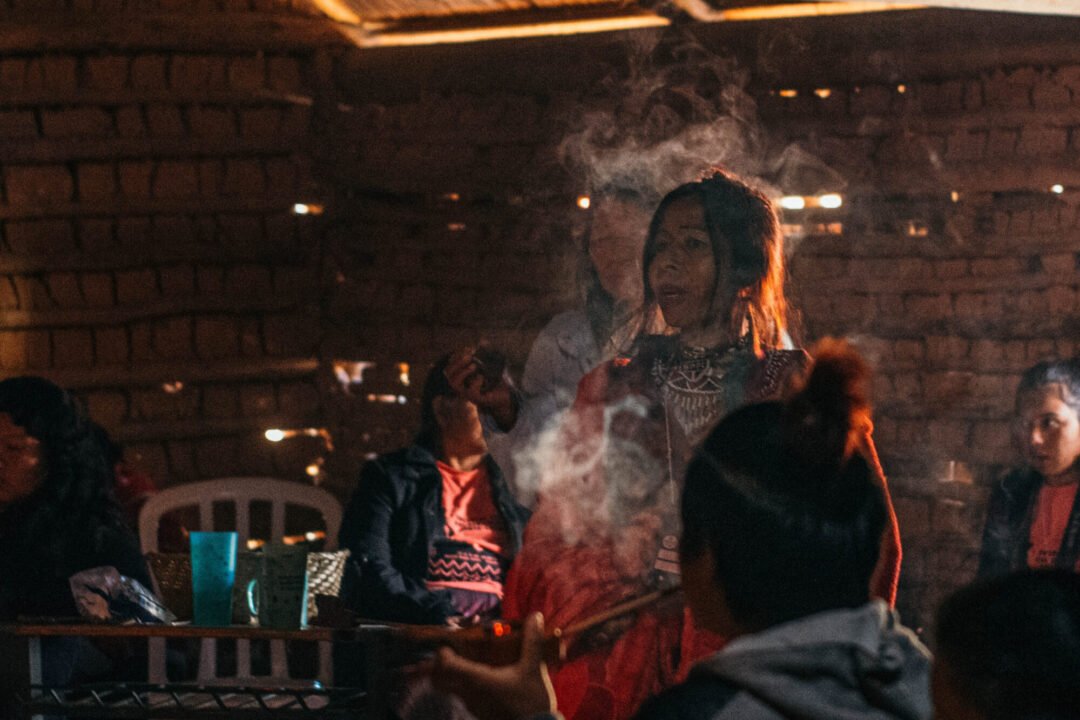 Após essa fala da Deise, uma companheira agredida se encorajou e contou, pela primeira vez em público, a história de uma agressão que sofreu. Maya (nome fictício) chegou em frente ao fogo para falar de cabeça baixa e ombros curvados para dentro. Olhando o tempo inteiro para baixo, proferiu sua fala. Era casada, tinha seis filhos, todos do mesmo pai. Até que um dia apareceu um homem, também casado, e começou a persegui-la. Ela sentiu, mas não fez nada – preferiu seguir sua vida na normalidade, como muitas mulheres vítimas de perseguição ainda fazem, silenciam. Esse homem, no entanto, não voltou para sua “vida normal”. Maya estava caminhando tranquilamente pela estrada, voltando para casa cansada após um dia de trabalho, um pouco distraída, quando de repente o homem salta do meio do mato e a agarra. “E homem é forte, né?”, ela comenta. O resto da história você deve imaginar… Já aconteceu com uma, duas, três, quantas mais?