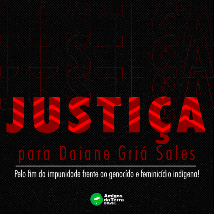 Nós da Amigos da Terra Brasil somos todes Daiane Griá Kaingang. Ontem, hoje, amanhã e sempre. Lutamos por justiça e medidas de proteção aos territórios e aos direitos dos povos indígenas. Gritemos pelo fim da impunidade frente ao genocído e feminicídio!