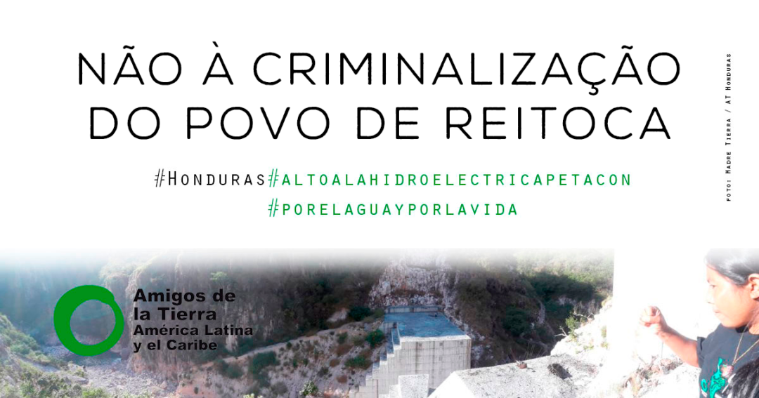 Em janeiro de 2018, os habitantes de Reitoca, município do departamento de Francisco Morazán, Honduras, instalaram um acampamento para impedir a construção de uma barragem hidroelétrica no rio Petacón. Em abril de 2019 foram fortemente reprimidos pela empresa PROGELSA (Promotora de geração de energia limpa S.A — na sigla em espanhol), uma empresa denunciada internacionalmente por violações dos direitos humanos, que insiste na implementação do projeto e tem levado à Justiça as pessoas que resistem à sua implementação.