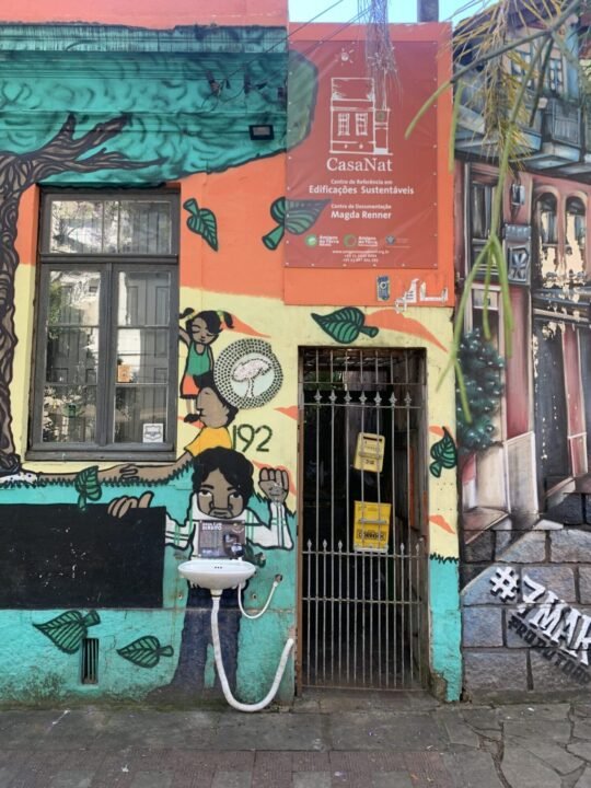 “Pra mim, aquela pia é um marco, ela representa essa situação que a gente vive. Colocar uma pia na rua é garantir acesso à água, que é um direito universal para todas, todos e todes. É uma oportunidade bem importante de a gente poder demonstrar isso e fazer com que a sociedade veja, sinta. Muitas vezes essas coisas ficam escondidas, distantes das pessoas, então a gente aproxima, mostra e trabalha isso”, diz Fernando Costa, o Fernandão, membro do conselho diretor da Amigos da Terra Brasil e bioconstrutor. Ele acredita que as cidades brasileiras deveriam garantir o “mínimo pra todo mundo, que de certa forma, a nossa Constituição em 1988 preconizou ali, colocou como questões importantes e muitas delas até hoje o Brasil ainda não conseguiu colocar em dia”. A pandemia da COVID-19 fez crescer ainda mais o visível abismo entre classes sociais, mas não foi só isso. “Houve um grande aumento da população de rua não só na cidade de Porto Alegre, mas na maioria das capitais do Brasil durante a pandemia. Segundo um levantamento feito no Rio, 30% da população de rua de hoje tinha ido parar na rua no último ano”, explica Lúcia Ortiz, presidenta da Amigos da Terra Brasil.