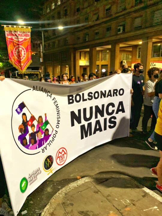 “Fomos nós, mulheres, que dissemos ELE NÃO, que nos levantamos contra os Golpes, inclusive para além do Brasil, que fizemos resistência ferrenha ao desgoverno, ao conservadorismo de ultra-direita neoliberal, ao fascismo representado pelo atual presidente. Nessa marcha uma vez mais gritamos: Bolsonaro NUNCA MAIS! E se algo ficou muito nítido é que nós mulheres seguiremos mobilizadas para derrotar esse projeto político de morte.”, fala Letícia Paranhos da Amigos da Terra Brasil e AFP. Os atos, os encontros, as vozes nas ruas e nas redes demonstram uma vez mais que o povo estará mobilizado para mudar o cenário político e econômico do país e que sem justiça de gênero não há justiça.