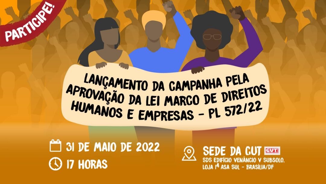 Para garantir que os direitos humanos sejam respeitados e que, nos casos de descumprimento, os responsáveis sejam punidos, a CUT e movimentos populares, como o Movimento dos Atingidos por Barragens (MAB), Amigos da Terra Brasil, e a Fundação Friedrich Ebert – Brasil (FES-Brasil), apoiam o Projeto de Lei (PL) nº 572/2022, que estabelece a Lei Marco Nacional sobre Direitos Humanos e Empresas e diretrizes para a promoção de políticas públicas no tema. O lançamento da Campanha pela aprovação da lei será nesta terça-feira (31), na sede da CUT-DF, a partir das 17h.