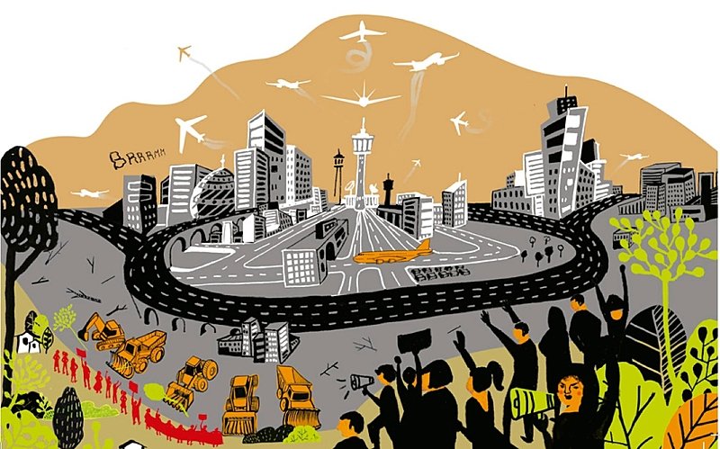 A expansão aeroviária está intimamente ligada à disputa territorial, sendo o caso da Vila Nazaré exemplar. Com o violento silêncio de autoridades e o lobby corporativo, pistas de aeroporto e imensos complexos industriais expulsam a população pobre sempre para mais longe nas cidades. A fim de impedir a desapropriação, a poluição, a destruição, a apropriação privada dos serviços públicos e o ecocídio causados pela indústria da aviação e atividades conexas, os direitos dos povos, especialmente das comunidades locais e de camponesas e camponeses em relação à governança e posse de suas terras e territórios devem ser totalmente reconhecidos e respeitados. Isso também ajuda a garantir a soberania alimentar e a proteger os meios de subsistência, o trabalho, a cultura e os costumes dos povos.