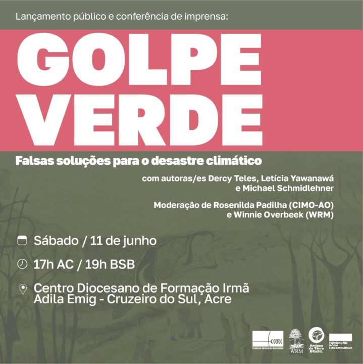 Acompanhe nas redes da Amigos da Terra, Conselho Indigenista Missionário (Cimi) e World Rainforest Movement (WRM), a partir das 17h, hora local do Acre, e 19h de Brasília.