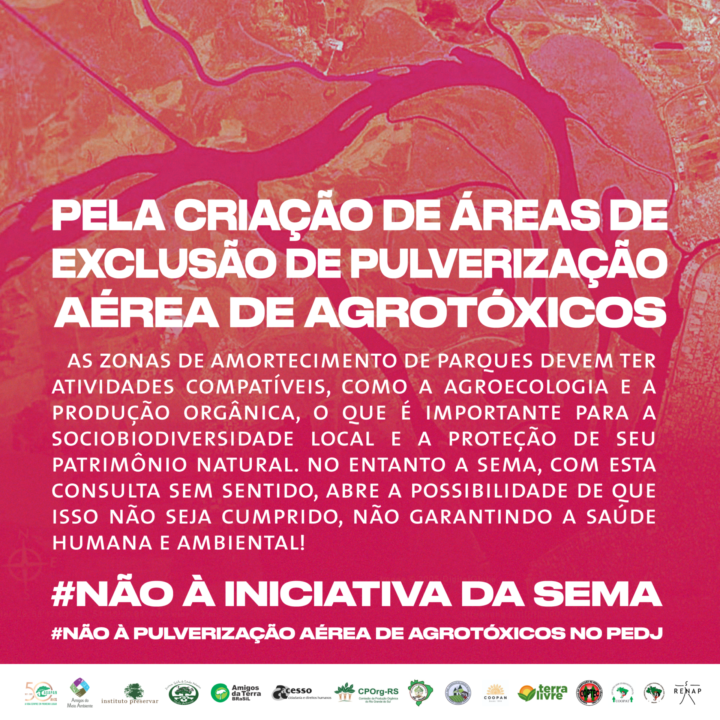 No abaixo-assinado, os apoiadores rejeitam a proposta da SEMA, exigindo que não seja autorizada qualquer atividade de pulverização aérea de agrotóxicos nas cercanias do PEDJ. Também reivindicam a elaboração de nova proposta em que conste um polígono de proteção, estabelecendo uma zona livre de pulverização aérea de agrotóxicos na região.