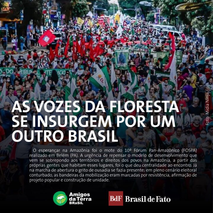 O “esperançar da Amazônia” foi o mote do 10º Fórum Pan-Amazônico (FOSPA) realizado em Belém (PA) na semana passada. Estiveram presentes por volta de 10 mil pessoas, sendo elas representantes quilombolas, indígenas, ribeirinhos, movimentos populares e organizações da sociedade civil de vários países: Brasil, Peru, Equador, Bolívia, Colômbia e Venezuela. A urgência de repensar o modelo de desenvolvimento que vem se sobrepondo aos territórios e direitos dos povos na Amazônia, a partir das próprias gentes que habitam esses lugares, foi o que deu centralidade ao encontro. Já na marcha de abertura esse grito de ousadia se fazia presente; em pleno cenário eleitoral conturbado, as bandeiras da mobilização eram marcadas por resistência, afirmação de projeto popular e construção de unidade.