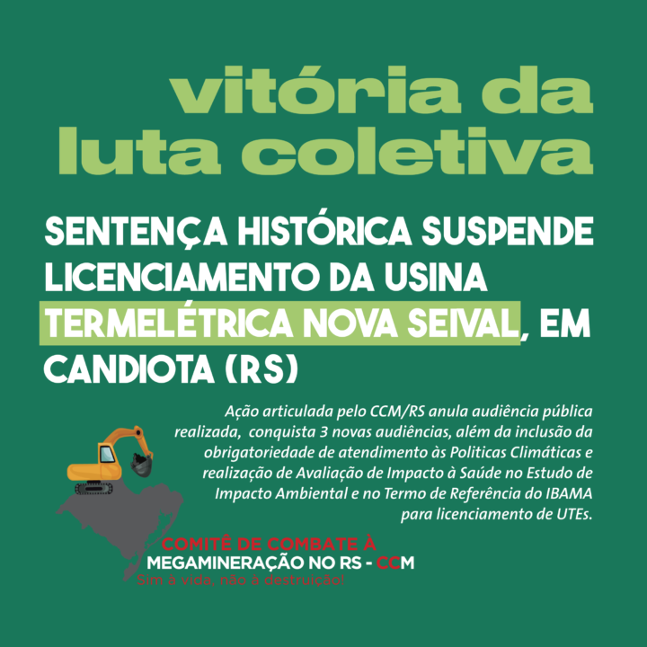 Em sentença proferida no dia 12 de agosto, a 9ª Vara Federal de Porto Alegre julgou procedente a Ação Civil Pública proposta pelo Instituto Preservar, pela Cooperativa Agroecológica Nacional Terra e Vida (Coonaterra/ BIONATUR), pelo Centro de Educação Popular e Pesquisa em Agroecologia (CEPPA), pela Associação Gaúcha de Proteção ao Ambiente Natural (AGAPAN) e pelo Instituto Gaúcho de Estudos Ambientais (INGÁ). A vitória é resultado de uma larga articulação protagonizada por produtores rurais assentados, pesquisadoras e da participação direta de mais de vinte entidades organizadas a partir do Comitê de Combate à Megamineração (CCM/RS).