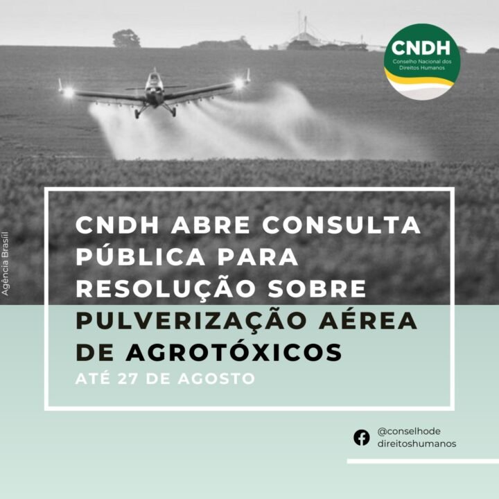 Até o próximo sábado (27) o Conselho Nacional dos Direitos Humanos (CNDH), do qual a Amigos da Terra Brasil integra, estará coletando contribuições sobre casos de pulverização de agrotóxicos por aeronaves para prevenção e reparação de violações de direitos humanos. A ação deverá resultar em proposta de Resolução do CNDH. A consulta é fruto de uma série de denúncias que se replicam pelos estados do Brasil. Para participar basta acessar o formulário nesse link e responder com as suas sugestões.