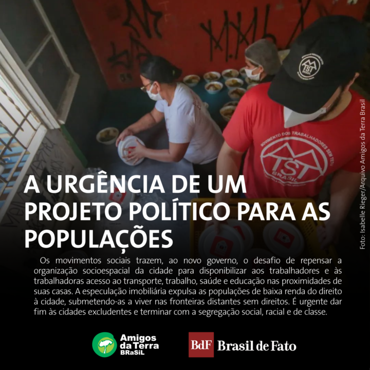 Diante de um Estado negligente, os movimentos populares organizaram suas forças e resistiram, cumprindo um papel político e pedagógico durante a pandemia que caberia ao poder público. Certamente, esses atores estão plenamente capacitados para opinar e construir soluções às cidades brasileiras porque, ao longo de sua luta histórica, acumularam experiências alternativas, como a Cozinha Solidária, os mutirões de construção e as ocupações urbanas, que educaram e politizaram o povo brasileiro para participar ativamente da construção de sua cidade. O novo governo precisa romper a lógica de que “a cidade é um espaço sem opção” propagada por empresas e assumir a capacidade do povo de se organizar, resistir, ocupar e pensar sobre seus problemas candentes.