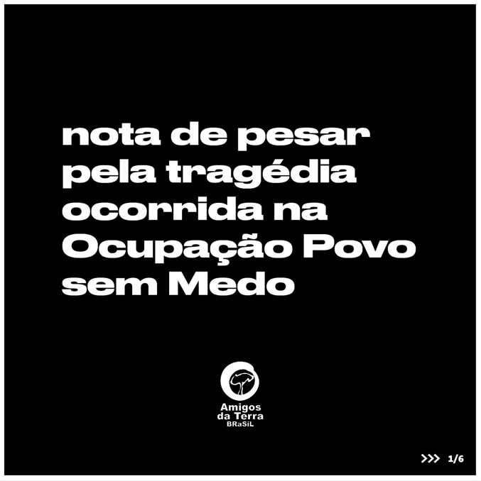 A Amigos da Terra Brasil manifesta seu profundo pesar com os companheiros e companheiras da Ocupação Povo sem Medo do MTST/RS, em Porto Alegre (RS), pelo incêndio trágico de ontem, especialmente com os familiares que perderam as duas crianças.