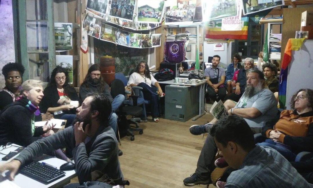 “Assumir nova identidade significa revisitar o passado sob outra perspectiva, alterando também o curso do agora e do futuro. Nesse movimento que não finda, refletimos sobre quem somos, quem estamos neste instante e sobre como nos organizamos para seguir transformando a realidade. Uma mudança que traz a reflexão sobre as possibilidades de um futuro com justiça ambiental, social, econômica, de gênero e livre de todas as formas de exploração e opressão. E que, na prática, constrói as possibilidades e alianças para que este futuro seja possível”. Assim inicia o texto de apresentação da Amigas da Terra Brasil e da sua nova identidade visual, lido durante a assembleia ordinária da organização, realizada na CaSAnAT na noite de 6ª feira (21/07), em Porto Alegre (RS). O trecho sintetiza o que representa essa reunião, que deu fim a uma gestão que, em meio à pandemia mundial da COVID e os desafios impostos à própria sobrevivência humana, precisou resistir a ataques fascistas, de setores econômicos e de governos contrários aos direitos do povos a uma vida mais justa, igualitária e ao ambiente ecologicamente equilibrado.