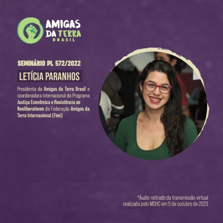 Um projeto baseado no PL 572/22 foi feito na Argentina. Colômbia e Uruguai também estão construindo marcos nacionais com características do projeto de lei brasileiro. “Nós não somos ingênuos e não pensamos que um marco legal irá resolver todos os problemas, todas as nossas demandas. Mas, se aprovado, nós teremos uma ferramenta para fazer uma luta mais justa frente ao poder econômico e político que gozam essas empresas”, explicou Letícia.