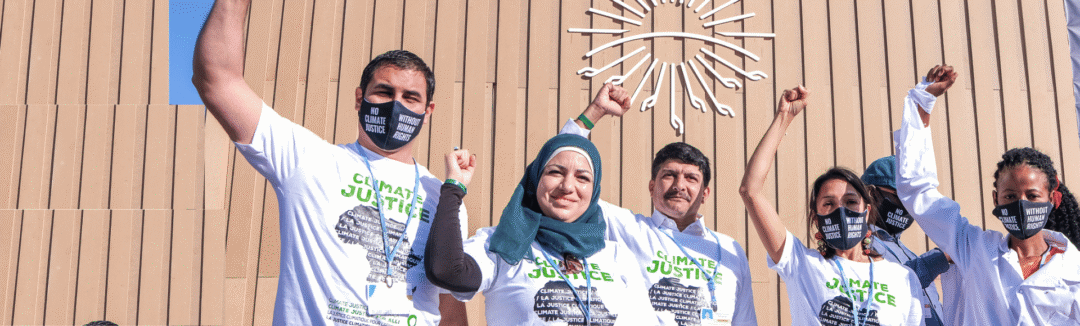 Na foto: PENGON – AT Palestina na COP27, em Sharm El Sheikh, Egito, com a delegação da Amigos da Terra Internacional