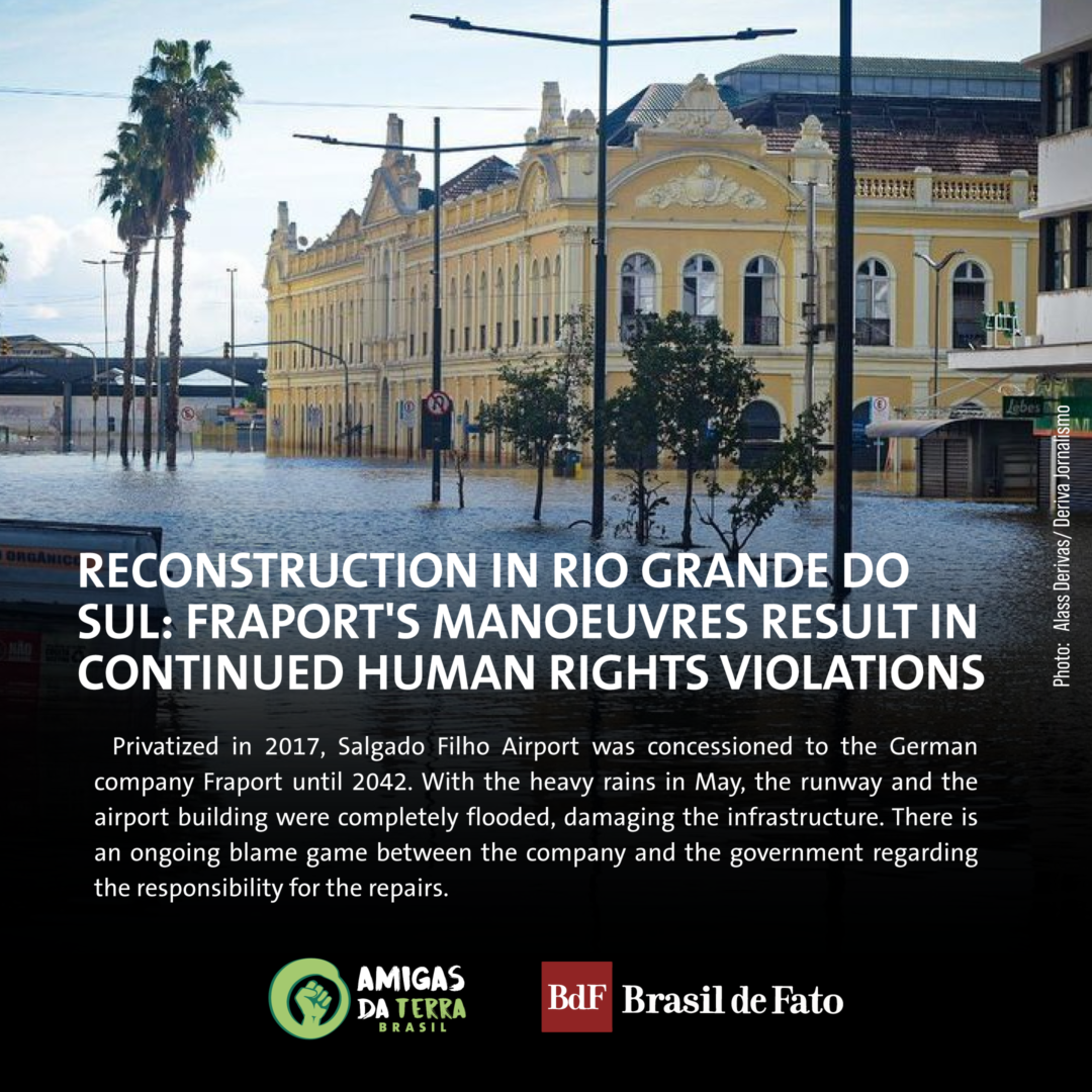 Article originally published in Portuguese in the newspaper Brasil de Fato on https://www.brasildefato.com.br/2024/08/12/reconstrucao-no-rio-grande-do-sul-manobras-da-fraport-resultam-na-continuidade-de-violacoes-dos-direitos-humano