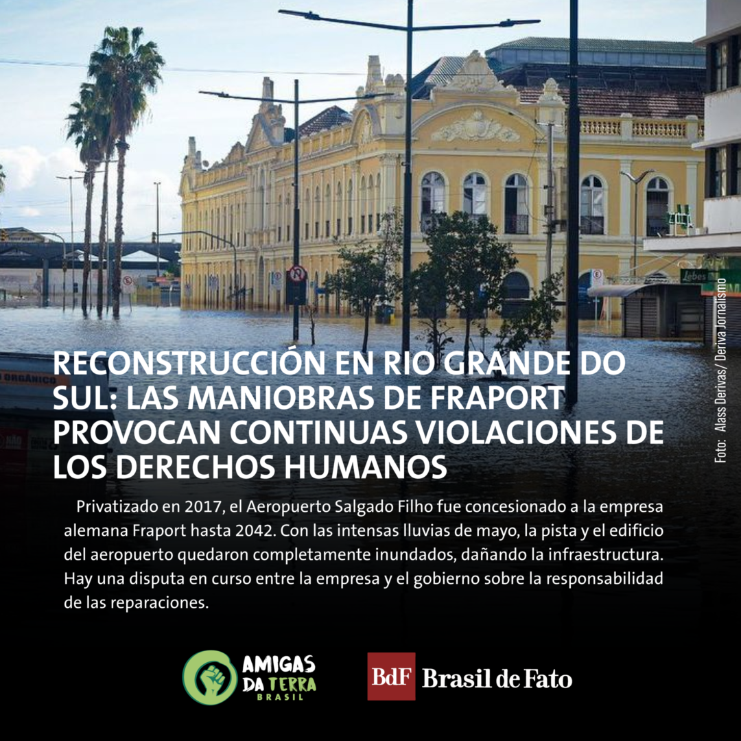 Artículo publicado originalmente en portugués en el diario Brasil de Fato el https://www.brasildefato.com.br/2024/08/12/reconstrucao-no-rio-grande-do-sul-manobras-da-fraport-resultam-na-continuidade-de-violacoes-dos-direitos-humanos
