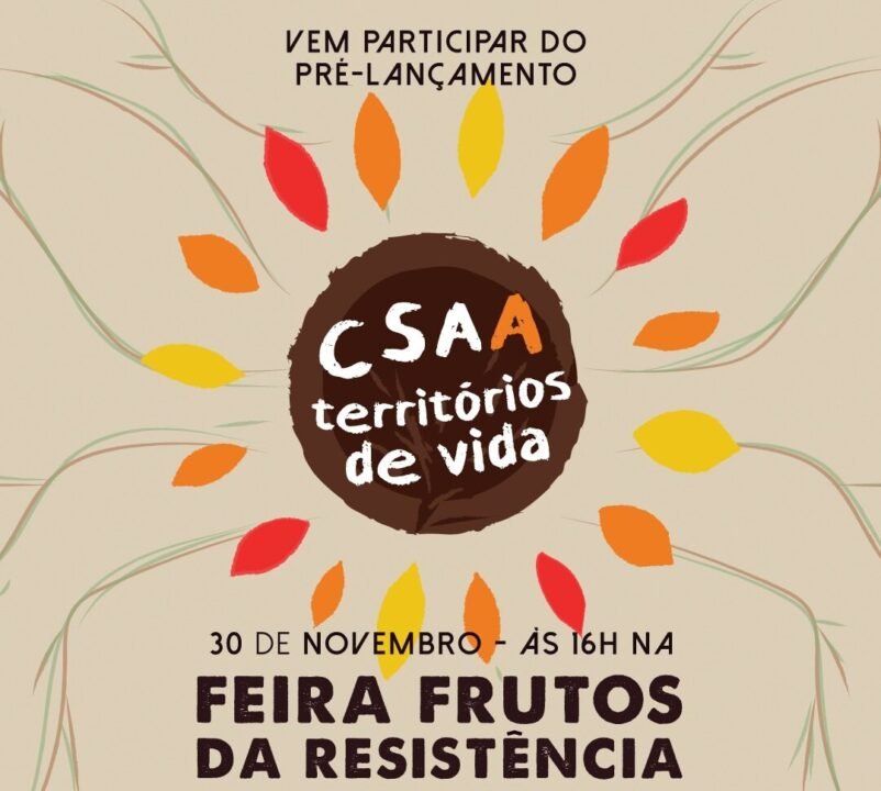 Nessa confluência, que contará com uma série de atividades e debates, acontecerá o pré-lançamento da Comunidade que Sustenta a Agricultura Agroecológica (CSAA) Territórios de Vida. Num intercâmbio de sabores e saberes, a CSAA Territórios de Vida reafirma o valor do encantamento, da produção agroecológica cooperada e da união entre campo e cidade, levando o nutrir para a sua morada. A iniciativa é um sistema de impulso social do trabalho conjunto entre agricultoras, artesãs, alquimistas e pessoas consumidoras conscientes (co-produtoras).