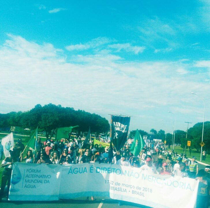 “Na grandeza dos povos, trocamos experiências de conhecimento, resistência e de luta. E estamos conscientes que a nossa produção é para garantir a vida e sua diversidade. Estamos aqui criando unidade e força popular para refletir e lutar juntos e juntas pela água e pela vida nas suas variadas dimensões. O que nos faz comum na relação com a natureza é garantir a vida. A nossa luta é a garantia da vida. É isso que nos diferencia dos projetos e das relações do capital expressos no Fórum das Corporações – Fórum Mundial da Água.”